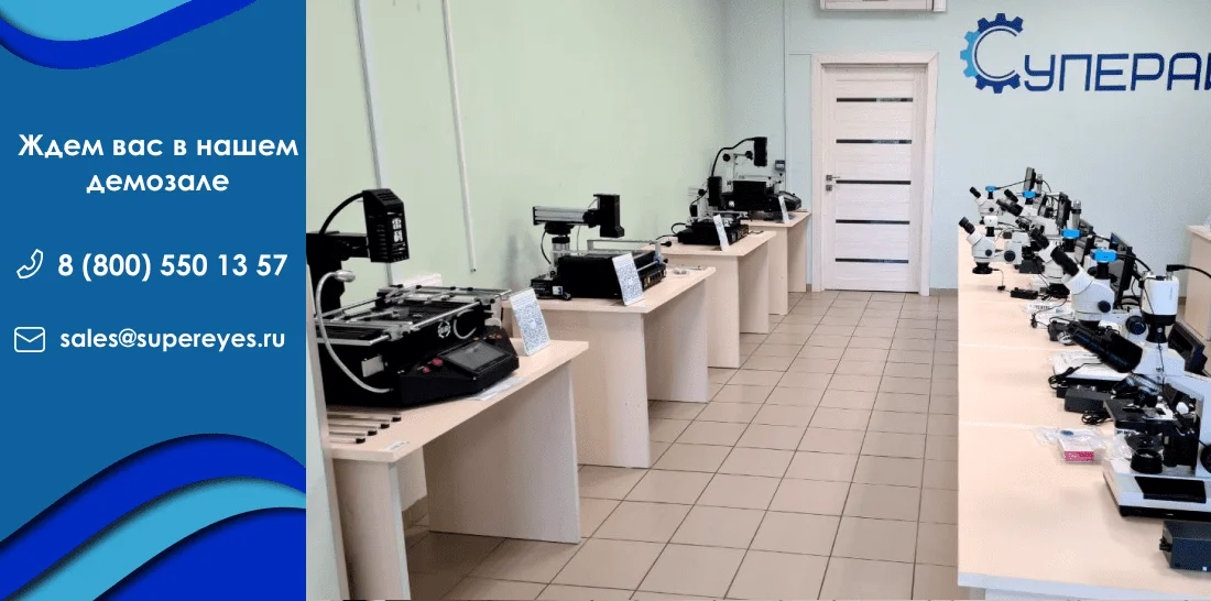 Приглашаем посетить наш демонстрационный зал и увидеть «вживую» тринокулярные стереоскопические и лабораторные микроскопы, а также предлагаемое инфракрасное оборудование для пайки и демонтажа BGA микросхем. Кроме этого, в нашем выставочном зале вы сможете оценить лабораторные блоки питания и электронные нагрузки.
