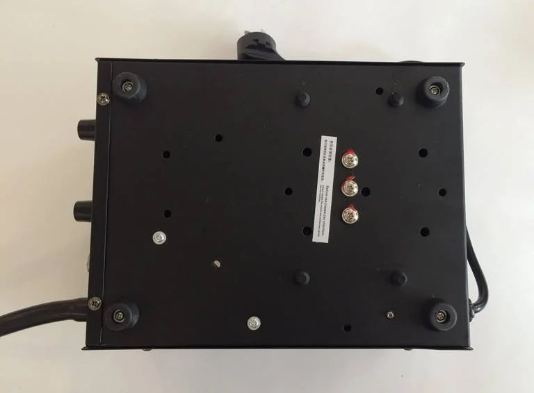 Основной блок выполнен из эргономичного, стойкого к ударам, жаропрочного пластика. О качестве изготовления продукта можно судить по находящимся с нижней стороны блока стопорным винтам, зафиксированными красной краской. Их нужно будет обязательно слегка ослабить (отпустить) перед началом эксплуатации станции. На задней стороне блока вы можете обнаружить шильдик с параметрами входного напряжения (стандартные пределы 220-240В) и шнур питания с литой евровилкой с заземляющим контактом.