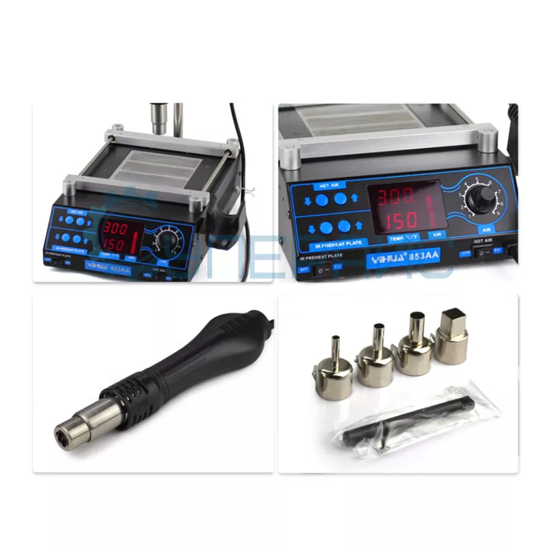 Паяльная станция для BGA корпусов YIHUA-853AA– это станции для пайки 2 в 1, которые представляют собой интеграцию станции предварительного нагрева и термофена. Данное оборудование разработано благодаря использованию передовой технологии SMD.