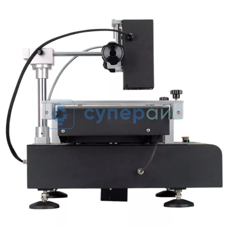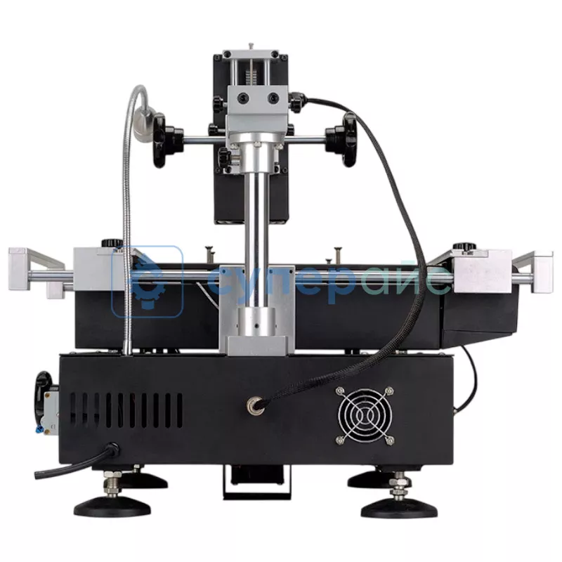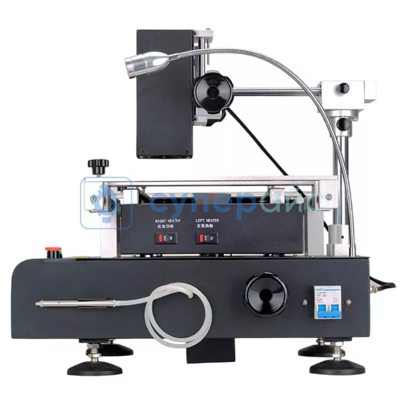 Среди сильных сторон, которыми располагает эта паяльная станция – мощная система терморегуляции, поддерживающая точность температуры ± 2 градуса по Цельсию, а также два вида нагревателей. Верхний имеет инфракрасный нагревательный элемент, нижний оборудован термовоздушным нагревательным элементом. Преднагреватель инфракрасного типа работает с мощностью 2400 Вт.