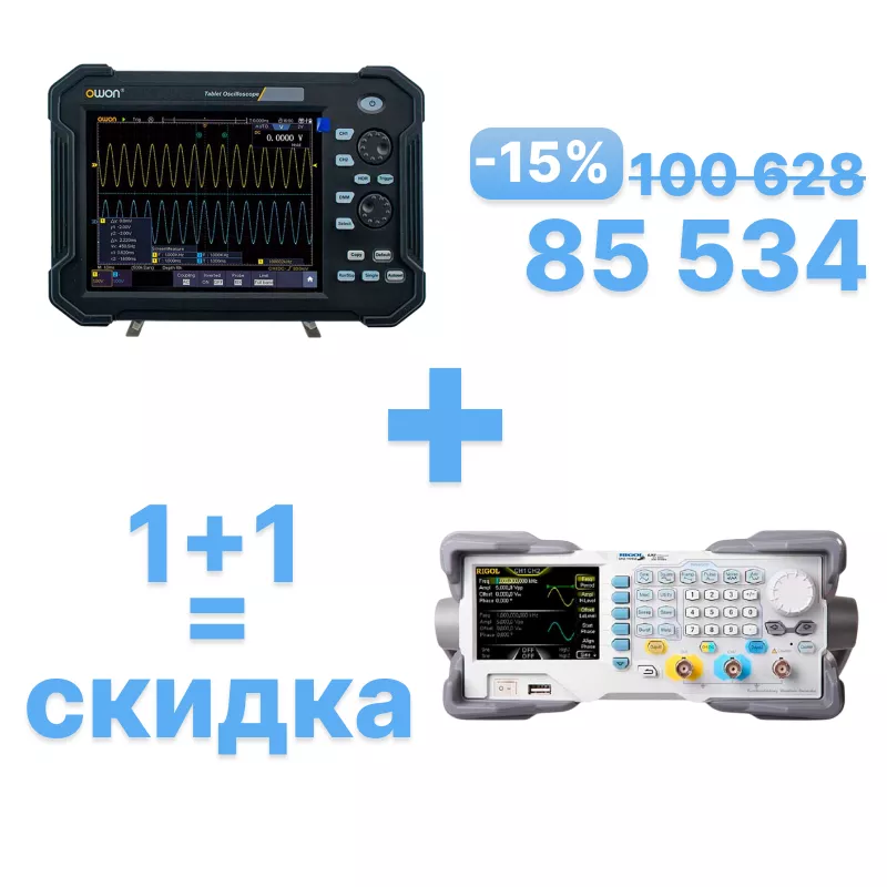 Акция 1+1 = скидка! Генератор сигналов Rigol DG1022Z + Осциллограф-мультиметр OWON TAO3102 – акция на комплект!