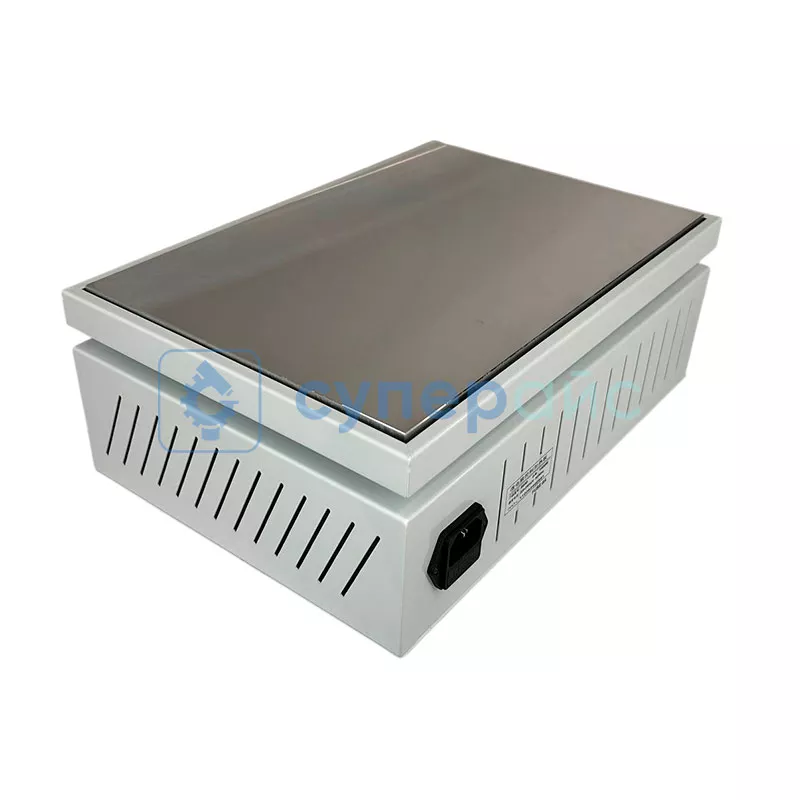 Площадь этого нагревательного термостола составляет 200 х 300 мм. Эти параметры подходят для работы с платами небольшого формата или изделиями среднего размера. Толщина плиты в 6 мм способствует равномерному распределению тепла по всей поверхности, что важно для качественной температурной обработки.
