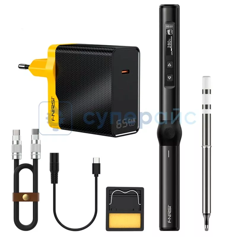 паяльник FNIRSI HS-01 PD – 1 шт паяльное жало – 1 шт кабель USB Type-C – 1 шт мини-подставка – 1 шт кабель для зарядки C2C PD – 1 шт быстрое зарядное устройство 65W PD GaN – 1 шт |