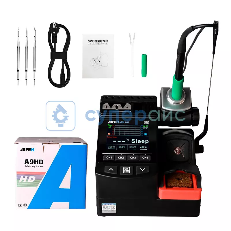 паяльная станция AIFEN A9 HD – 1 шт паяльная ручка T210 – 1 шт кабель питания – 1 шт наконечники для пайки C210 – 3 шт руководство по эксплуатации – 1 шт |