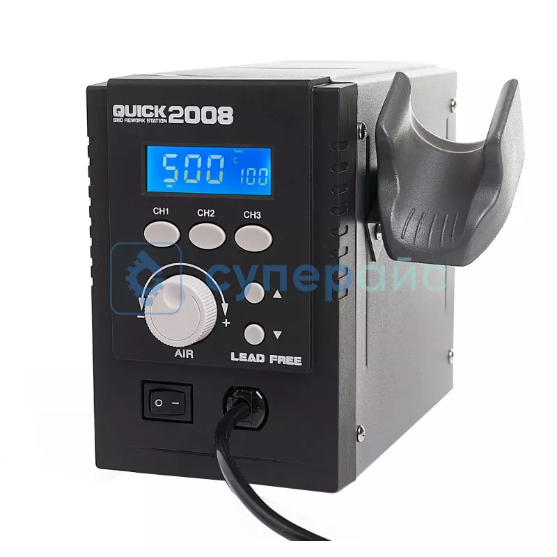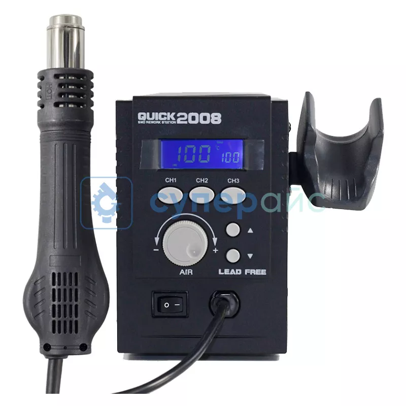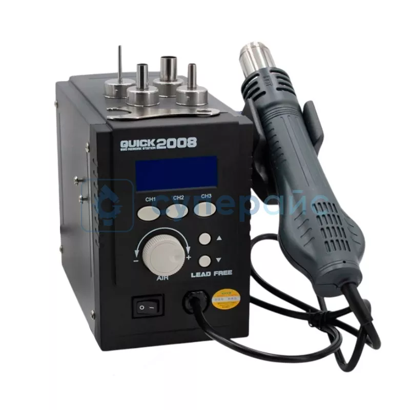 термовоздушная паяльная станция Quick 2008 ESD Lead Free - 1 шт держатель для термофена - 1 шт термофен - 1 шт насадка для термофена - 4 шт |