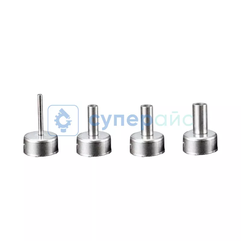 Поддерживаются насадки диаметром 3, 6, 8 и 12 мм, которые расширяют функционал оборудования. Станция подойдёт для пайки компонентов разных размеров.