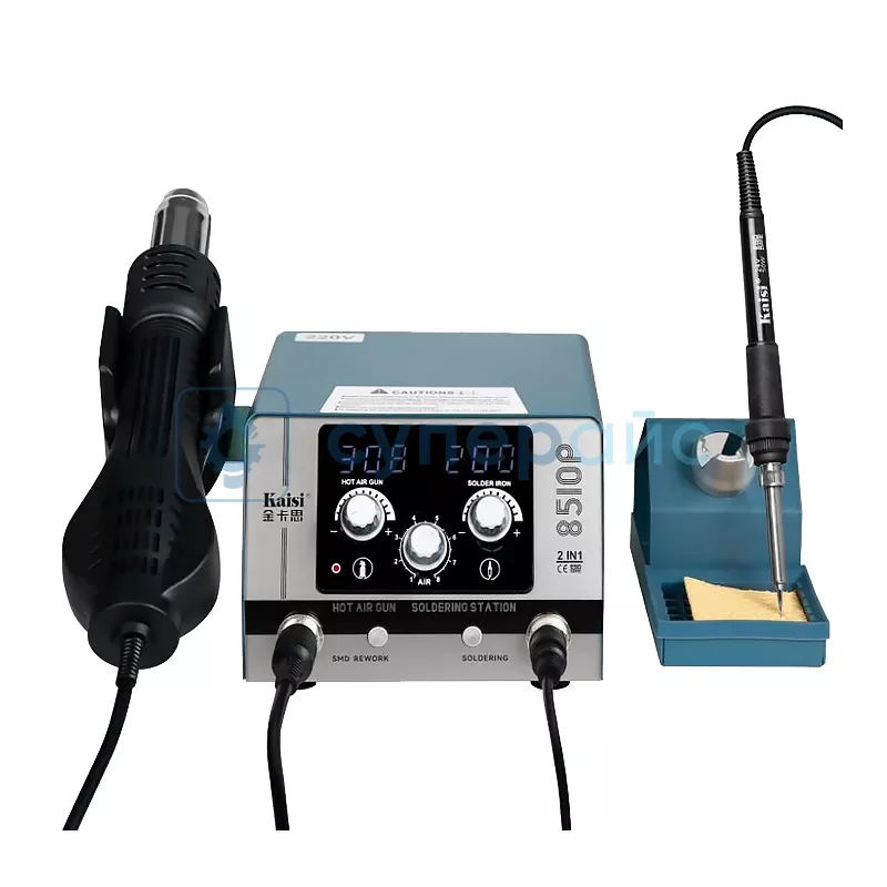 паяльная станция Kaisi 8510P – 1 шт паяльник – 1 шт фен – 1 шт насадки для термофена (6, 8, 10, 12 мм) – 4 шт |