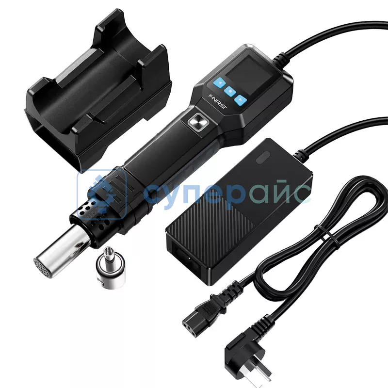 фен FNIRSI SAG-55 – 1 шт металлическая подставка – 1 шт насадка 6 мм - 1 шт адаптер питания - 1 шт кабель питания - 1 шт руководство пользователя - 1 шт |