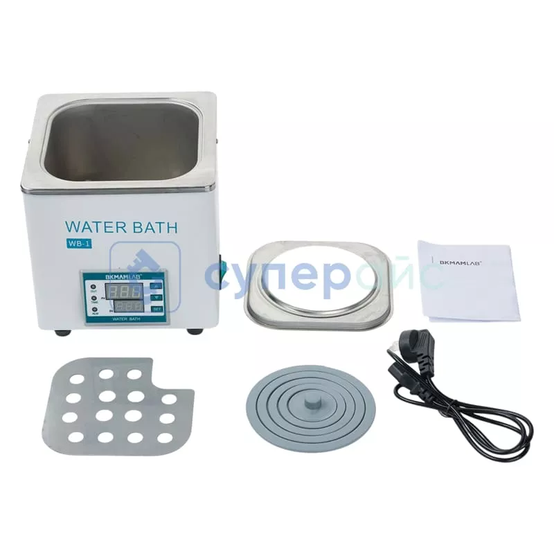 лабораторная баня BKMAMLAB WB-1 – 1 шт кольцевая крышка – 1 шт нагревательный элемент (ТЭН) – 1 шт съемная сетка (перфорированная перегородка) – 1 шт верхняя крышка (панель) – 1 шт кабель питания – 1 шт руководство по эксплуатации – 1 шт |