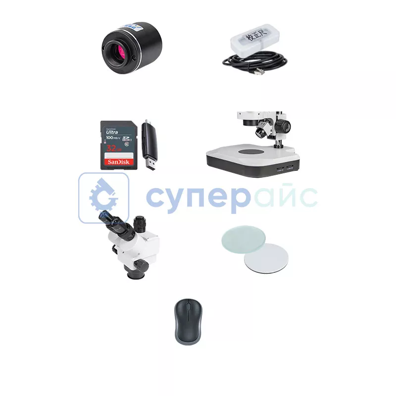 микроскоп AOSVI T5-HD208C – 1 шт окуляры WF10 X / 20 мм – 2 шт цифровая камера – 1 шт тринокулярная насадка – 1 шт карта памяти SD – 1 шт кард-ридер – 1 шт кабель HDMI – 1 шт измерительная линейка – 1 шт осветительная система (стойка с проходящим освещением) – 1 шт компьютерная мышь – 1 шт стеклянная пластина / двухсторонний столик (черный/белый) – 1 шт |