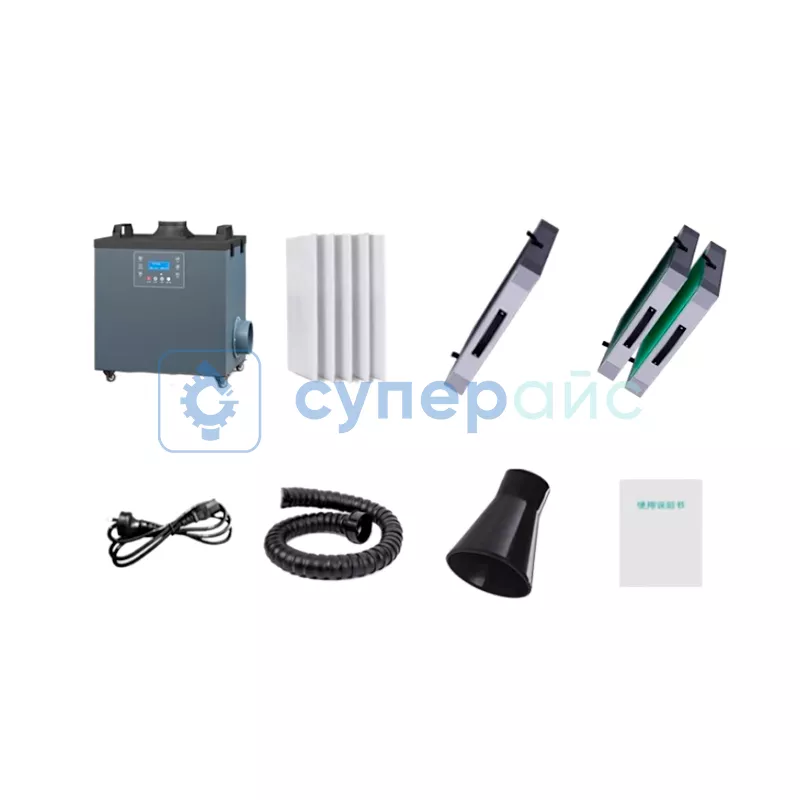дымопоглотитель XY-385 - 1 шт предварительный фильтр - 5 шт среднеэффективный фильтр - 1 шт высокоэффективный фильтр - 2 шт сетевой кабель - 1 шт дымоотводная труба - 1 шт дымоприёмник - 1 шт инструкция пользователя - 1 шт |