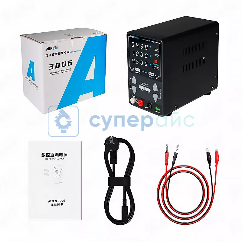 источник питания AIFEN 3006 – 1 шт кабель питания – 1 шт измерительные провода – 1 пара руководство по эксплуатации – 1 шт |