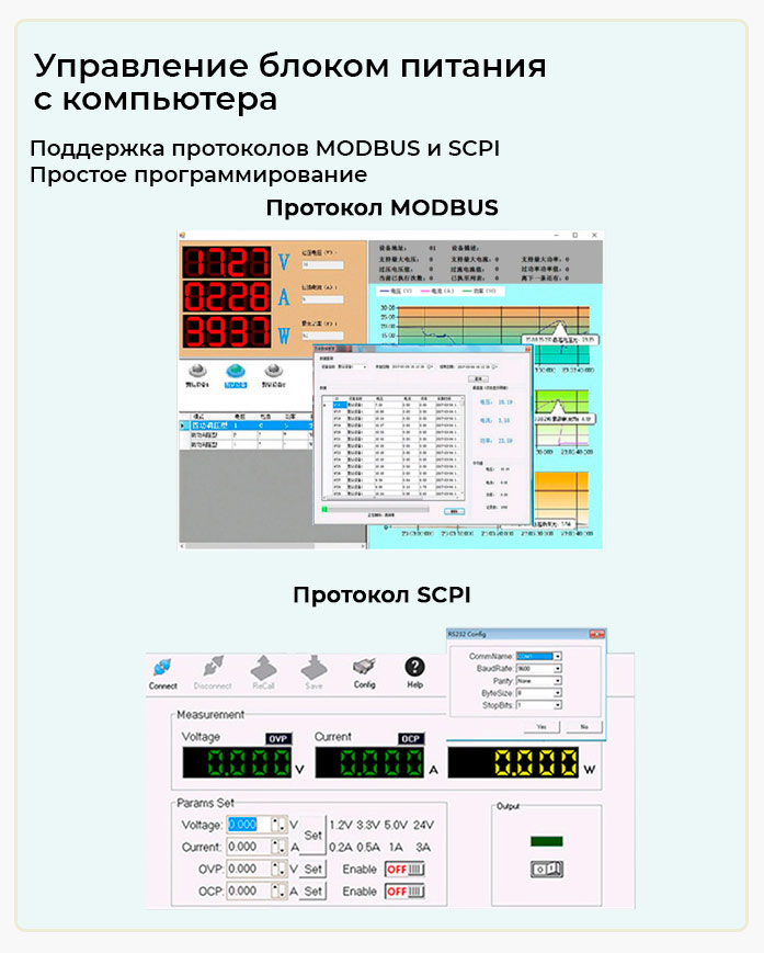 | Протоколы | нет | Modbus, SCPI | ||||