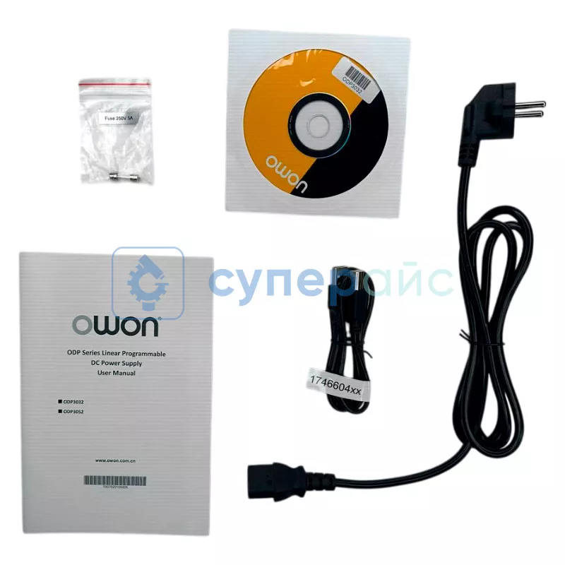 программируемый источник питания постоянного тока OWON ODP3032 – 1 шт USB кабель – 1 шт кабель питания – 1 шт запасной предохранитель – 1 шт инструкция по эксплуатации – 1 шт |