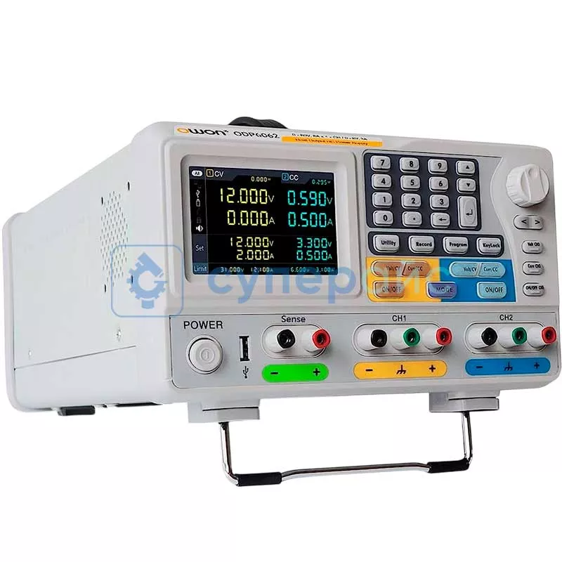 Источник питания OWON модели ODP6062 — это двухканальный лабораторный прибор с мощным функционалом. Два независимых канала с параметрами 0–60 В / 0–6 А и 0–6 В / 0–3 А помогают одновременно работать с устройствами разной мощности. Выходное напряжение регулируют для тестирования схем, заряда аккумуляторов, подачи питания на маломощные компоненты.