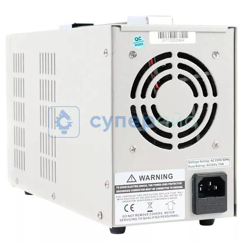 Данный источник обладает полным цифровым управлением и имеет 5 настроек памяти для сохранения установленных режимов, которыми вы пользуетесь регулярно. На лицевой части прибора расположены большие 4-х разрядные индикаторы для вывода рабочих значений. Устройство способно функционировать в режимах стабилизации напряжения и тока, а также имеется возможность электронного отключения. При превышении определенного уровня тока или напряжения включается звуковая сигнализация, а также блок питания снабжен охлаждающей системой для снижения рабочих температур.