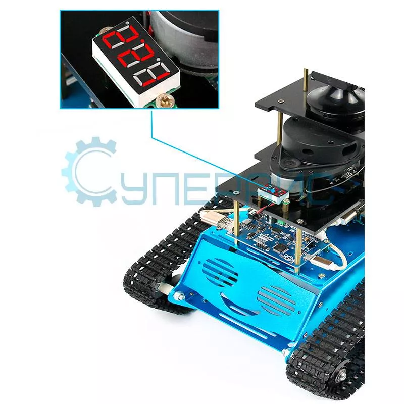 Гусеничный робот ROS Robot smart car A на Raspberry Pi 4B (2 ГБ) представляет собой надежный и удобный для программирования робототехнический набор, выполненный на гусеничном шасси. Основой конструкции служит корпус, оснащенный платой Raspberry Pi 4B с объемом оперативной памяти 2 ГБ. Такой робот поддерживает распознавание препятствий и безопасное передвижение благодаря встроенной системе с дальномером лидаром RPLIDAR A1 и 9-осевым гироскопом. Эти компоненты делают его подходящим вариантом для создания и тестирования собственных программ и робототехнических решений.