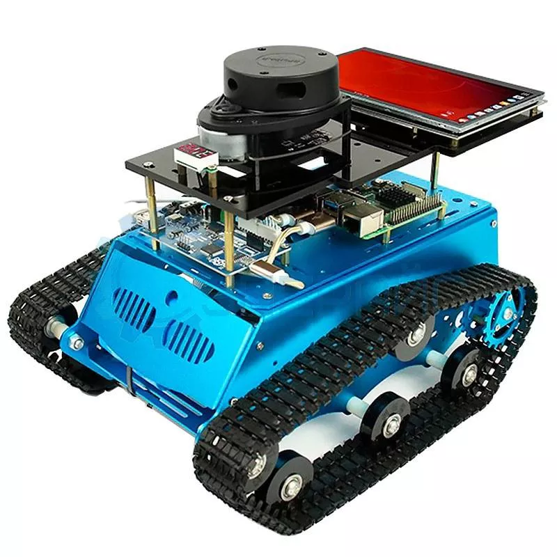 Гусеничный робот ROS Robot smart car A на Raspberry Pi 4B (2 ГБ). Встроенный сенсорный дисплей. Возможность отслеживания препятствий на 360 градусов благодаря лидару, 9-осевой гироскоп. Программирование на C++, Python. Транспортной компанией по РФ и СНГ