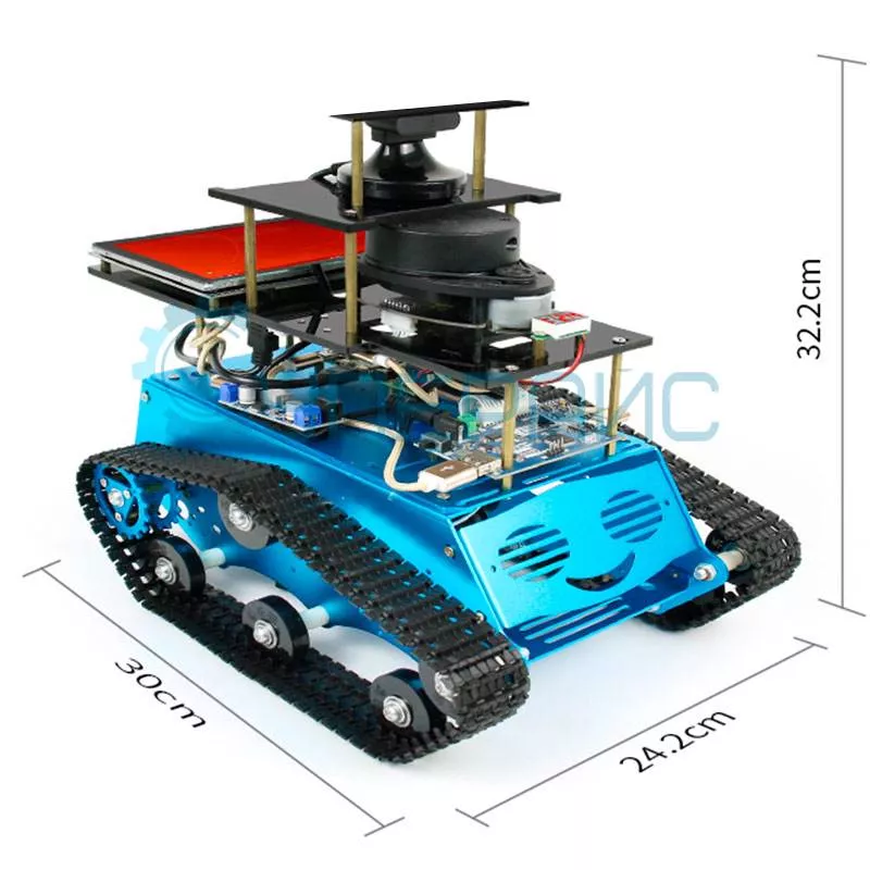 Гусеничный робот ROS Robot smart car A на Raspberry Pi 4B (2 ГБ). Встроенный сенсорный дисплей. Возможность отслеживания препятствий на 360 градусов благодаря лидару, 9-осевой гироскоп. Программирование на C++, Python. Технические характеристики ROS Robot smart car A