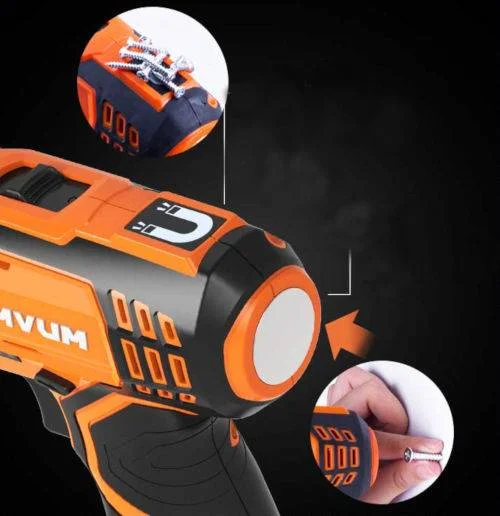 Чтобы не носить во время работы шурупы в кармане или, что еще неудобнее, держать в руке, на корпусе модели LV-8612S присутствует специальный магнитный держатель для оперативного хранения и доступа к шурупам. А задняя часть инструмента имеет жесткую область, которая послужит как молоток для насаживания шурупов.