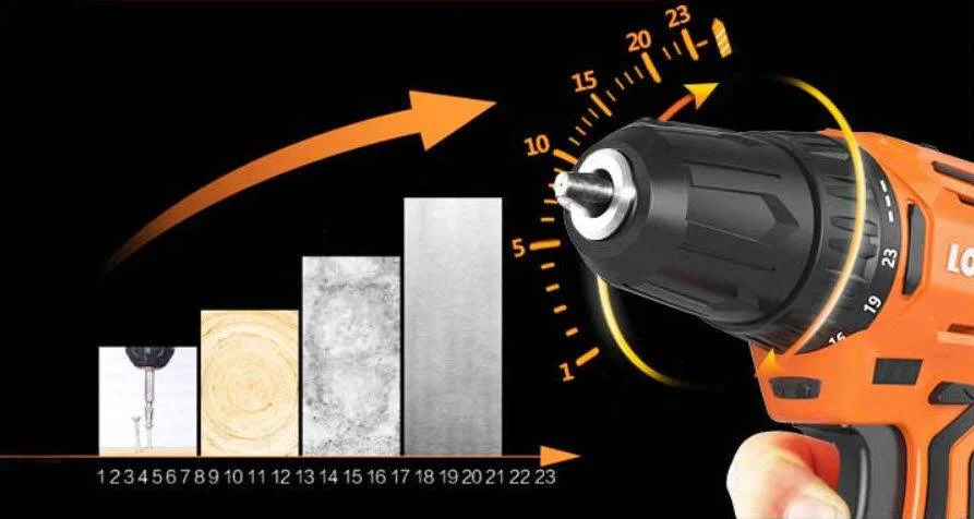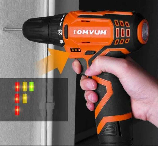 Шуруповерт Lomvum LV-8612S хоть и является компактным устройством бытового назначения, однако способен справляться с поверхностями разного уровня твердости благодаря крутящему моменту в 21 Ньютон-метр.Достаточно настроить крутящий момент, и вы готовы к работе – регулировка имеет 23 ступени (плюс режим дрели), к примеру, для работы с деревом нужно зафиксировать колесо в пределах 8-13-го режима, а для металла придется отрегулировать с 17-го по максимальный режим. При включении функции дрели мотор инструмента начнет работу эффективную для сверления отверстий, режим имеет высокую скорость вращения и низкий крутящий момент.