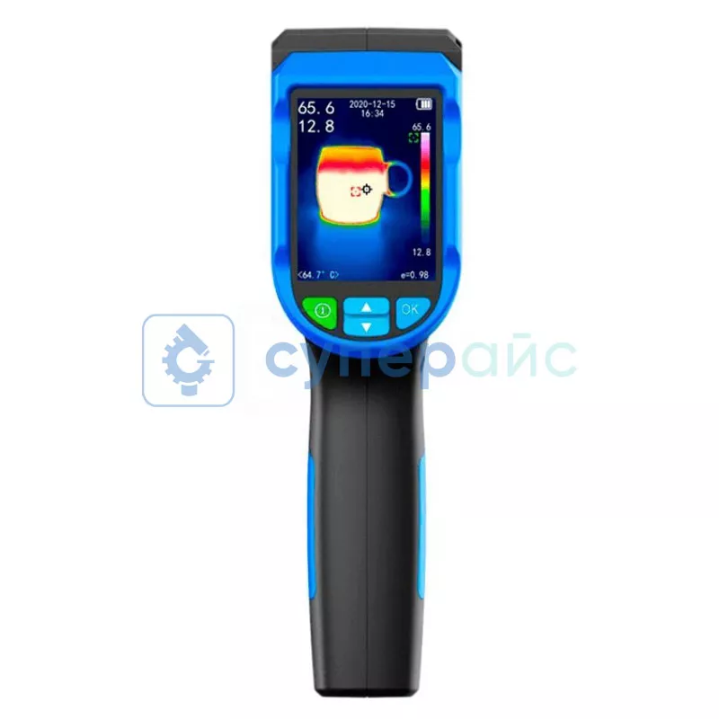 Экран ЖК даёт ясное отображение температурных карт. Чёткий экран помогает быстро оценивать распределение тепла в кадре. Широкий диапазон измерения температуры (-40 градусов Цельсия ~ 330 градусов Цельсия) обуславливает съёмку как холодных, так и горячих объектов. Можно решать большой список рабочих задач по контролю температурных режимов. Высокое разрешение инфракрасного изображения (320 х 240) обуславливает детализированную картинку. Такой цифровой тепловизор помогает выявлять мелкие очаги нагрева.