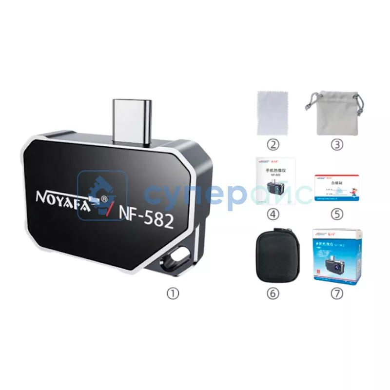 тепловизор NF-582 — 1 шт безворсовая салфетка — 1 шт подушка-мешочек — 1 шт инструкция по эксплуатации — 1 шт сертификат соответствия — 1 шт набор инструментов — 1 шт упаковочная коробка — 1 шт |