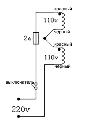 Принципиальная электрическая схема подключения трансформатора на 110 В к сети 220 В