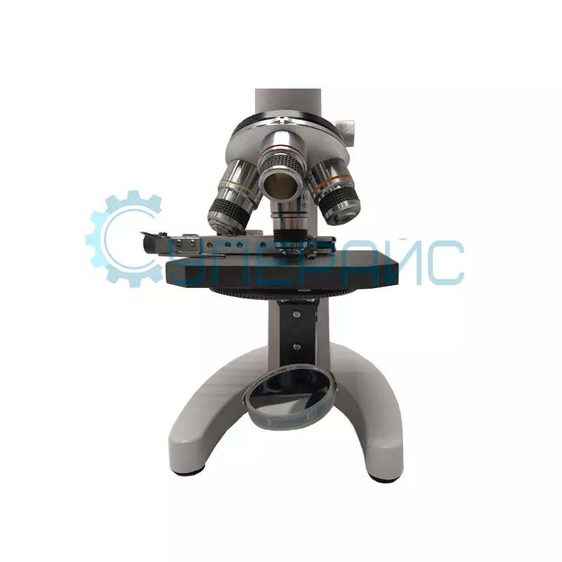 Школьный микроскоп с русскоязычным руководством по проведению опытов и револьверным устройством на 3 объективаУвеличение микроскопа: 100 - 1200 крат