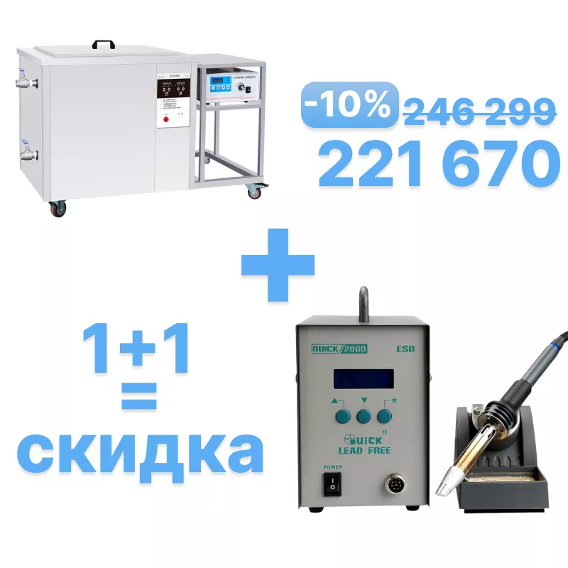Акция 1+1 = скидка! Паяльная станция Quick 206D + Ультразвуковая ванна FUYANG F-301 – акция на комплект!