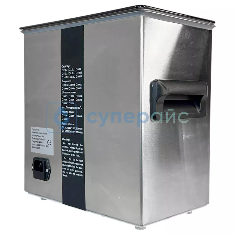 - Мощность ультразвука 120 Вт обеспечивает интенсивное очищение различных поверхностей