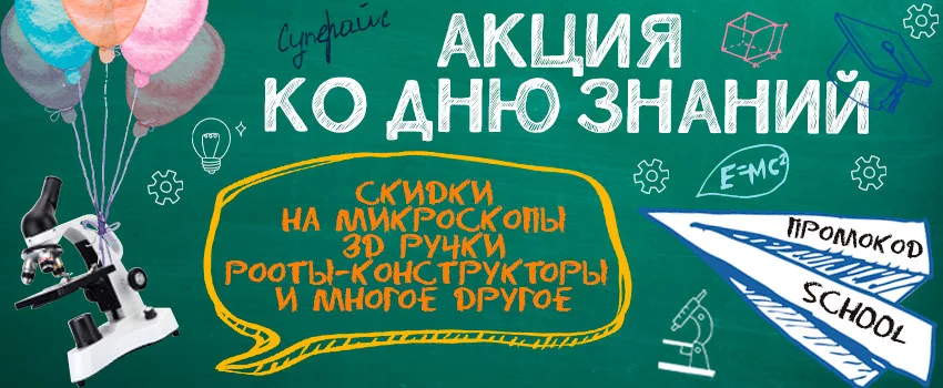 Специально в преддверии первого сентября мы подготовили для наших любимых клиентов приятные скидки до 15% на микроскопы, наборы готовых микропрепаратов, роботов-конструкторов, 3D-ручек и многое другое.Мы поможем нашим почемучкам и будущим изобретателям познавать мир с огромным интересом с помощью качественного и доступного оборудования и электронных инструментов.