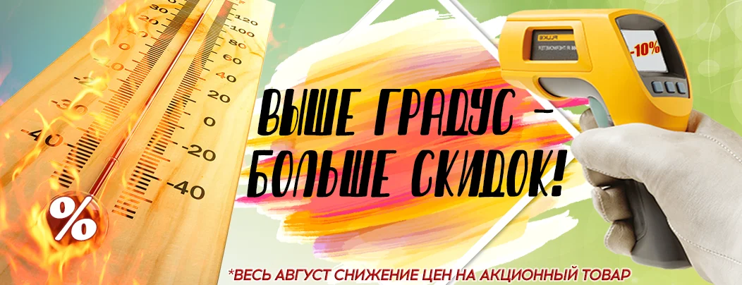 - Акция «Выше градус-больше скидок!» действует c 02.08.2021 00:00 по московскому времени по 31.08.2021 до 23:59 по московскому времени и требует ввода промокода "SUMMER".